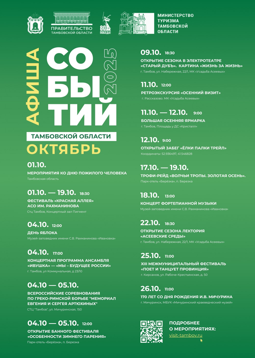 16 октября | 13:00 | «Великая Победа» - исторический квест, посвященный 80-летию Победы в ВОВ | с. Староюрьево, ул. Коммунальная, 3-а МБУК «Историко-музыкальный музей им. А.Н. Верстовского Староюрьевского муниципального округа Тамбовской области» | По ПК билет 100 рублей |
